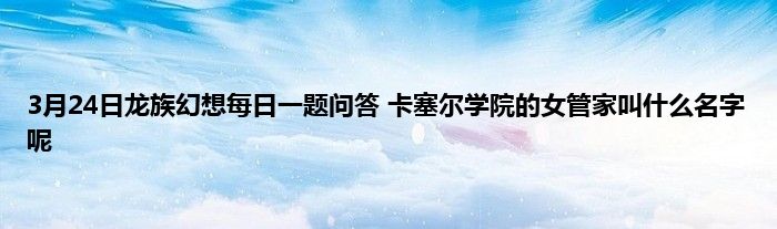 小编今天给各位玩家朋友们带来的是3月24日龙族幻想每日一题问答 卡塞尔学院的女管家叫什么名字呢,有记得的玩家朋友吗?不记得也没有关系,小编已经帮助大家把3月24日龙族幻想每日一题问答 卡塞尔学院的女管家叫什么名字呢找了出来,你只需要动动你的小手就可以轻松知道啦,快来瞧一瞧吧。