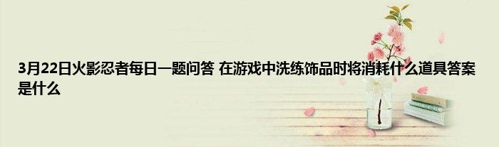 以上就是3月22日火影忍者每日一题问答 在游戏中洗练饰品时将消耗什么道具答案是什么的推荐,相信通过3月22日火影忍者每日一题问答 在游戏中洗练饰品时将消耗什么道具答案是什么这篇文章能帮到你,也欢迎对游戏很感兴趣小伙伴们一起来探讨。