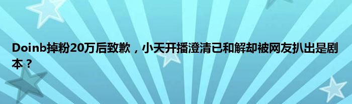 Doinb表示自己最近的这些事情没有处理好,发生了很多不该有的情况,在房管事件开始时没有意识到问题所在,还继续玩梗念ID来开玩笑,给小天造成了伤害,对小天和队友说对不起,而自己的状态影响到了队伍,后面会停播,一直到比赛结束后再来交待问题,和小天已经私下沟通道歉,发微博是对粉丝道歉。
