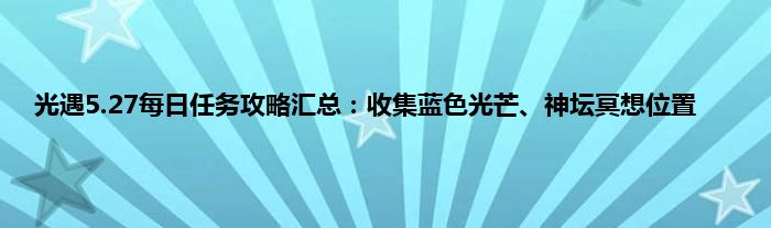光遇每天都需要玩家来完成日常任务,完成日常任务之后可以获得对应的奖励,今天的日常任务已经出来了,分别是向一位玩家鞠躬,收集蓝色光芒,解救一只被黑暗藤蔓困住的遥鲲,在禁阁的神坛旁冥想,很多玩家不知道蓝色光芒怎么收集,冥想的位置在哪,下面就来跟小编一起来看看攻略内容吧。