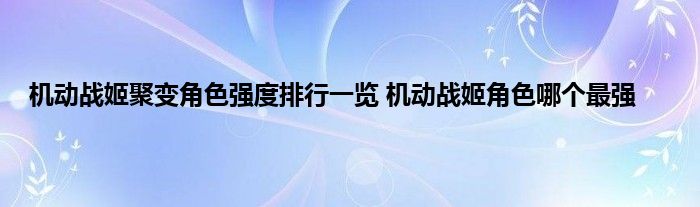 机动战姬聚变中有很多各种不同的角色,每个角色都有不同的技能和特色,有的角色因为定位关系就比较强,游戏刚开始,大家肯定是想要快速拿到最强的角色,那么这些角色中哪些是最强的呢,下面就来尾随小编一起来看看机动战姬聚变角色最强排名。