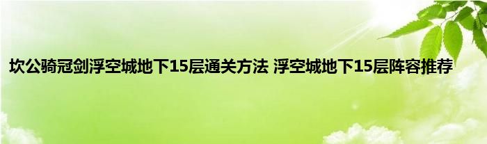 坎公骑冠剑浮空城地下15层通关方法