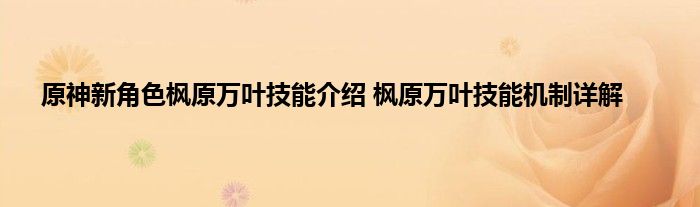 原神马上推出新的角色枫原万叶,听名字就非常帅气,不过惋惜更像是个辅助,还是个男辅助,枫原万叶的技能已经出来了,损害目前来看还是比较可观的,下面就来尾随小编一起来看看枫原万叶的技能介绍,希翼能帮到大家。