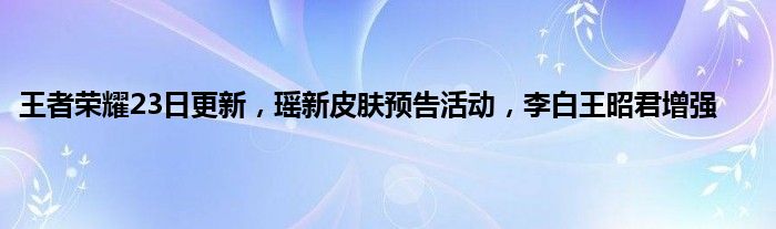 王者荣耀23日更新,瑶新皮肤预告活动,李白王昭君增强