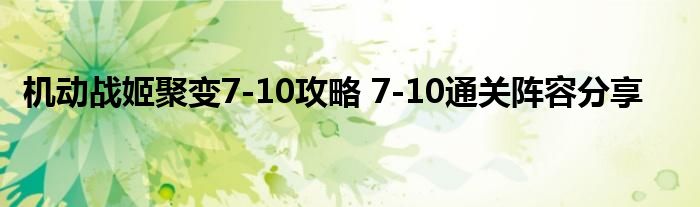 机动战姬聚变7-10通关阵容搭配攻略: