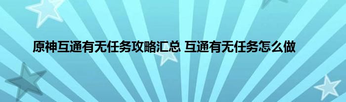原神互通有无任务攻略