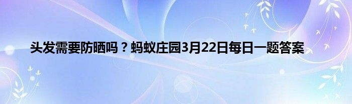 大家好,蚂蚁庄园今天的问题是头发需要防晒吗?头发被暴晒后,毛发表面的毛鳞片会受损,导致毛皮质裸露,头发角蛋白中的水分丢失,那么问题的答案是什么呢,答对的可以获得小鸡饲料用来喂养小鸡,小编收集和整理了相关答案以及解析,下面一起来看看吧!