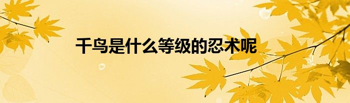 千鸟是什么等级的忍术呢?
