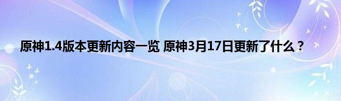 原神1.4风花的邀约3月17日更新到什么时候结束?今天是3月17日,原神1.4版本更新,这次的更新带来了很多的新内容,更新将在早上6点开始,持续5个小时的停机更新,新的1.4带来了全新的活动,任务,武器,角色等等,具体更新了什么呢,下面一起来看看吧。