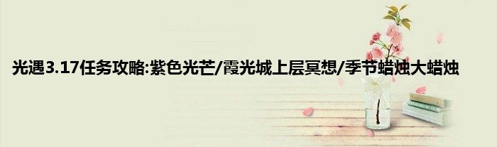 光遇3.17任务攻略汇总分享!光遇3月17日每日任务到来,今天的几个都不算陌生了,紫色光芒、霞光城上层冥想、净化黑暗植物等以前都有过。今天的季节蜡烛在墓土,而大蜡烛是在霞谷地图。一起来看看光遇3.17任务流程图文详解吧。