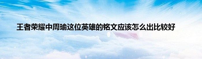 今天弟哥来聊聊一篇关于王者荣耀中周瑜这位英雄的铭文应该怎么出比较好的文章,游戏是很多人的选择,但是游戏玩多了也会身心疲惫,现在就为大家来简单介绍下王者荣耀中周瑜这位英雄的铭文应该怎么出比较好,希望对各位小伙伴们有所帮助。