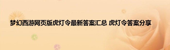 梦幻西游网页版虎灯令答案大全
