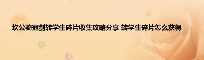感谢你在百忙之中抽出时间阅读坎公骑冠剑转学生碎片收集攻略分享 转学生碎片怎么获得这篇文章。你觉得今天坎公骑冠剑转学生碎片收集攻略分享 转学生碎片怎么获得话题怎么样?关于坎公骑冠剑转学生碎片收集攻略分享 转学生碎片怎么获得这篇文章的任何评论都可以告诉我。你的每一个建议都是对小编辑的肯定和鼓舞。小编明天会继续给你带来更多的好内容。我希翼你不要错过。感谢支持哟!