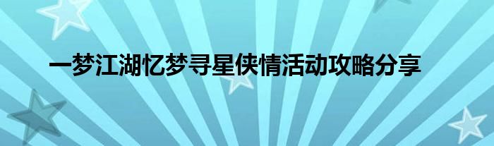 一梦江湖忆梦寻星侠情活动怎么玩
