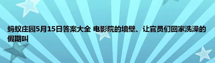 2021年5月15日蚂蚁庄园答案是什么?5月15日蚂蚁庄园的答案很多的玩家都不清晰,这三个问题有:我国古代,让官员们回家洗澡的假期叫?为什么大多数电影院的墙壁,会做成凹凸不变或多孔的样子?下面小编给大家介绍一下具体的答案和解析,一起来看看吧。