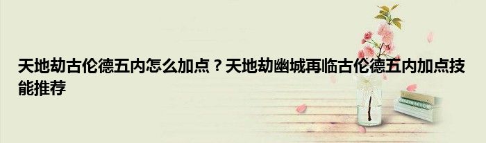 天地劫幽城再临古伦德五内加点攻略