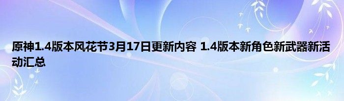 原神1.4版本风花节3月17日更新内容 1.4版本新角色新武器新活动汇总