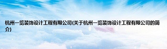 大家好,杭州一览装饰设计工程有限公司,关于杭州一览装饰设计工程有限公司的简介很多人还不知道,现在让我们一起来看看吧!