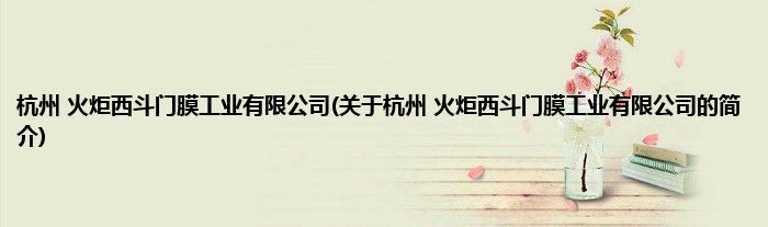 本文关于杭州 火炬西斗门膜工业有限公司的简介就讲解完毕,希望对大家有所帮助。