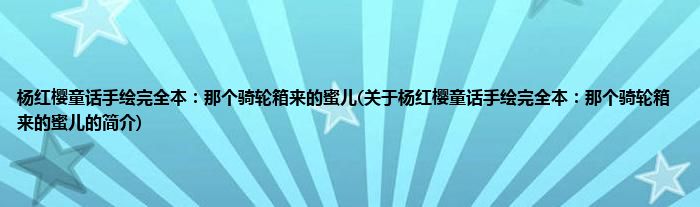 本文关于杨红樱童话手绘完全本:那个骑轮箱来的蜜儿的简介就讲解完毕,希望对大家有所帮助。