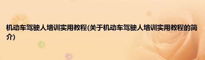 本文关于机动车驾驶人培训实用教程的简介就讲解完毕,希望对大家有所帮助。