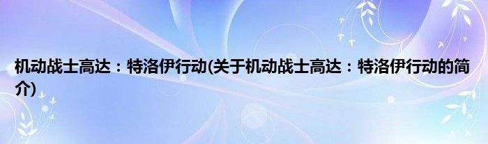 大家好,机动战士高达:特洛伊行动,关于机动战士高达:特洛伊行动的简介很多人还不知道,现在让我们一起来看看吧!