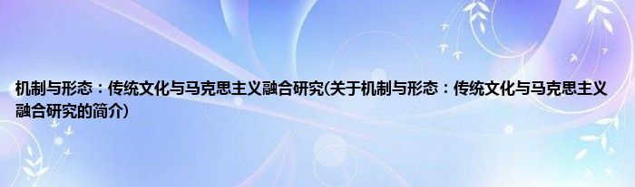 本文关于机制与形态:传统文化与马克思主义融合研究的简介就讲解完毕,希望对大家有所帮助。