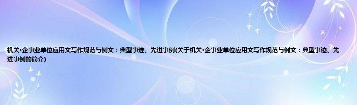 1、 (1)《机关?企事业单位公文写作规范与例文:典型事迹、先进事例》 ——贴近生活的实用范例,教你写出精彩应用文,! (2) 《机关?企事业单位公文写作规范与例文:典型事迹、先进事例》 —— 让你思路犹如泉涌,轻松应对各种场合!
