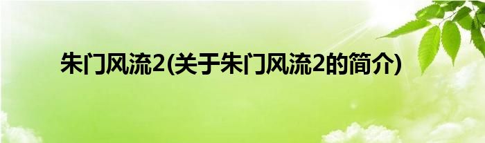 本文关于朱门风流2的简介就讲解完毕,希望对大家有所帮助。