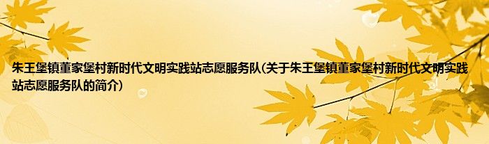 本文关于朱王堡镇董家堡村新时代文明实践站志愿服务队的简介就讲解完毕,希望对大家有所帮助。