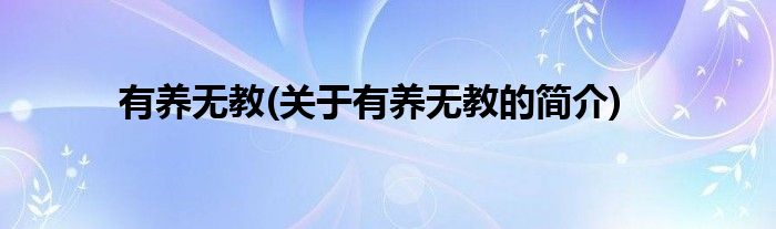 大家好,有养无教,关于有养无教的简介很多人还不知道,现在让我们一起来看看吧!