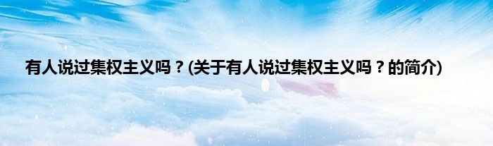 大家好,有人说过集权主义吗?,关于有人说过集权主义吗?的简介很多人还不知道,现在让我们一起来看看吧!