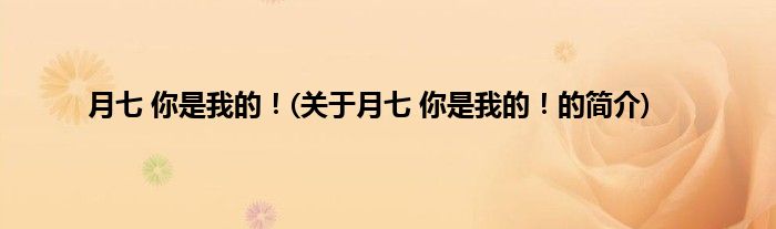 大家好,月七,你是我的!,关于月七,你是我的!的简介很多人还不知道,现在让我们一起来看看吧!
