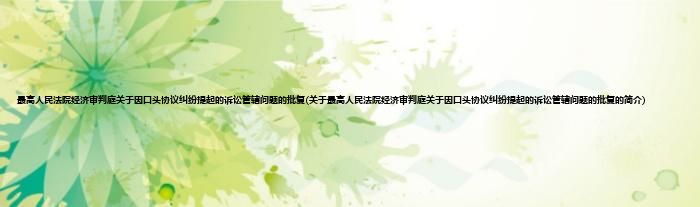 大家好,最高人民法院经济审判庭关于因口头协议纠纷提起的诉讼管辖问题的批复,关于最高人民法院经济审判庭关于因口头协议纠纷提起的诉讼管辖问题的批复的简介很多人还不知道,现在让我们一起来看看吧!