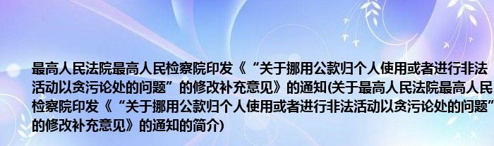 本文关于最高人民法院最高人民检察院印发《“关于挪用公款归个人使用或者进行非法活动以贪污论处的问题”的修改补充意见》的通知的简介就讲解完毕,希望对大家有所帮助。