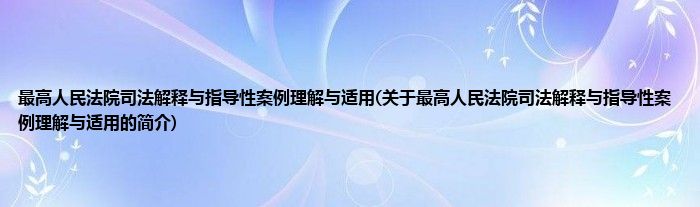 本文关于最高人民法院司法解释与指导性案例理解与适用的简介就讲解完毕,希望对大家有所帮助。