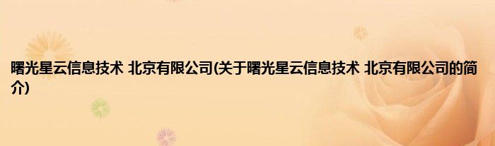 本文关于曙光星云信息技术 北京有限公司的简介就讲解完毕,希望对大家有所帮助。
