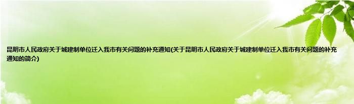 本文关于昆明市人民政府关于城建制单位迁入我市有关问题的补充通知的简介就讲解完毕,希望对大家有所帮助。