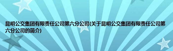 本文关于昆明公交集团有限责任公司第六分公司的简介就讲解完毕,希望对大家有所帮助。