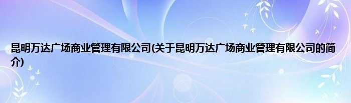 大家好,昆明万达广场商业管理有限公司,关于昆明万达广场商业管理有限公司的简介很多人还不知道,现在让我们一起来看看吧!