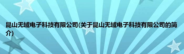 昆山无域电子科技有限公司(关于昆山无域电子科技有限公司的简介)