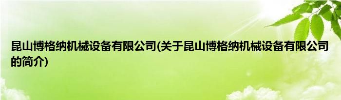本文关于昆山博格纳机械设备有限公司的简介就讲解完毕,希望对大家有所帮助。