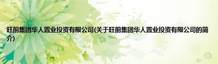 本文关于旺前集团华人置业投资有限公司的简介就讲解完毕,希望对大家有所帮助。