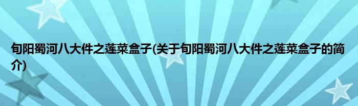 1、 旬阳蜀河八大件之莲菜盒子是陕西旬阳地区一道特色菜品,在旬阳蜀河八大件里寓意和和美美;它用粮、菜、肉巧妙结合而成,莲菜清脆馅肉鲜香。