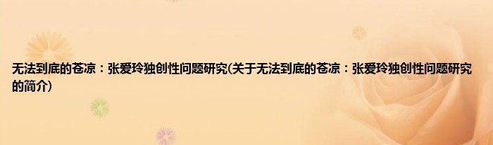 本文关于无法到底的苍凉:张爱玲独创性问题研究的简介就讲解完毕,希望对大家有所帮助。