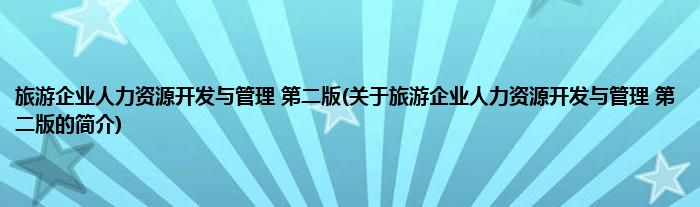大家好,旅游企业人力资源开发与管理 第二版,关于旅游企业人力资源开发与管理 第二版的简介很多人还不知道,现在让我们一起来看看吧!