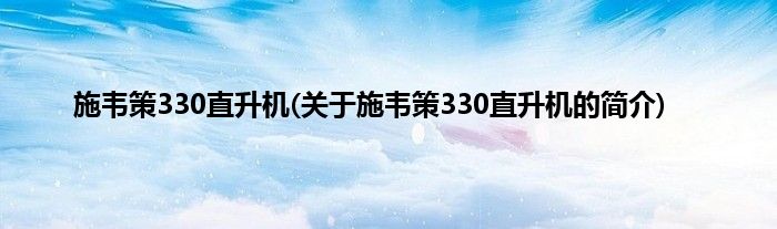 本文关于施韦策330直升机的简介就讲解完毕,希望对大家有所帮助。