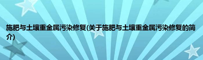 本文关于施肥与土壤重金属污染修复的简介就讲解完毕,希望对大家有所帮助。