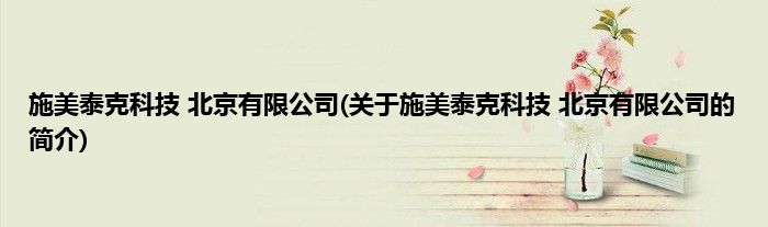 大家好,施美泰克科技 北京有限公司,关于施美泰克科技 北京有限公司的简介很多人还不知道,现在让我们一起来看看吧!