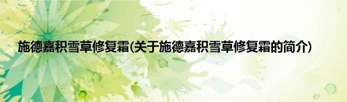本文关于施德嘉积雪草修复霜的简介就讲解完毕,希望对大家有所帮助。